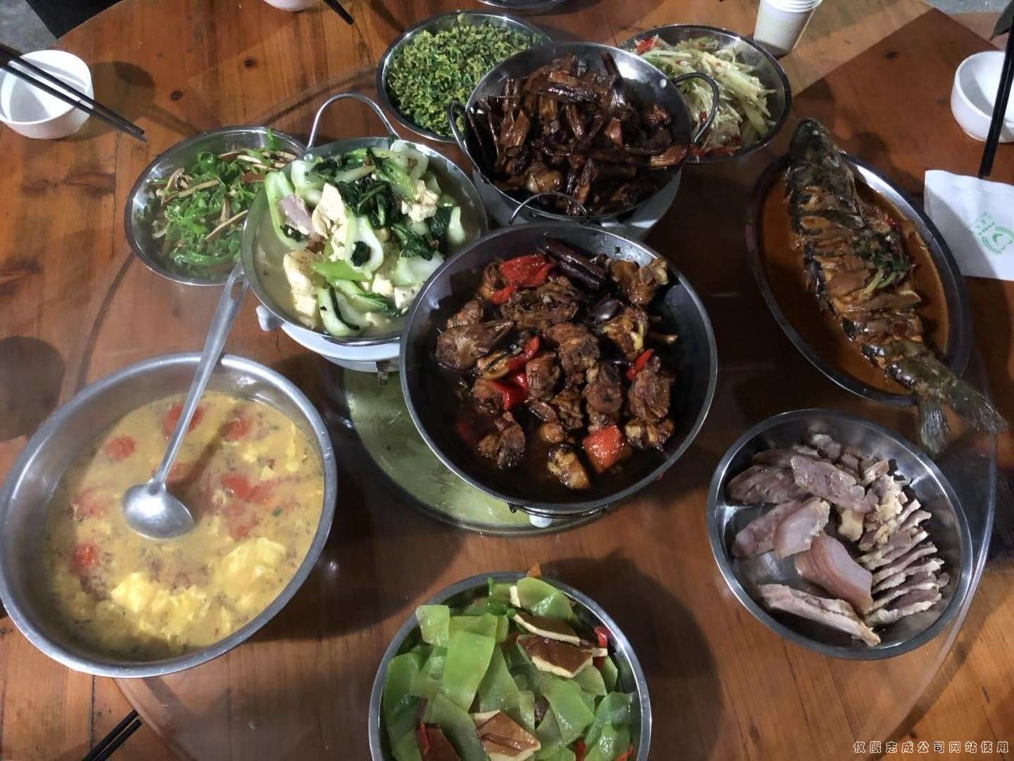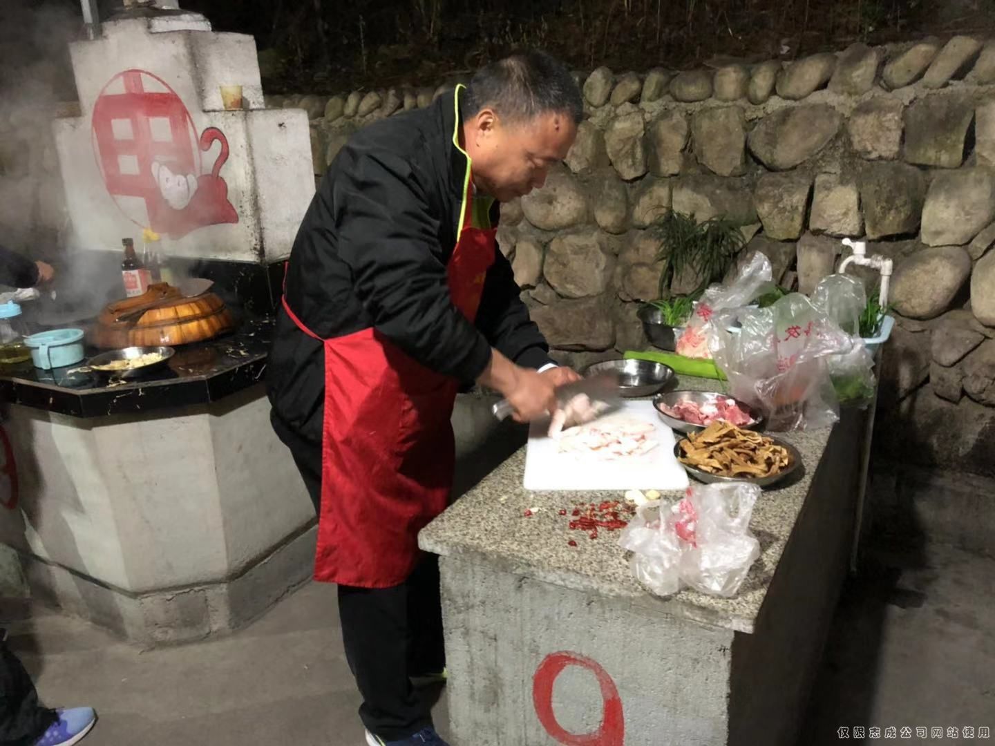 各位神廚紛紛拿出看家絕活,不足一小時,色香味俱全的九菜一湯便的桌上。
