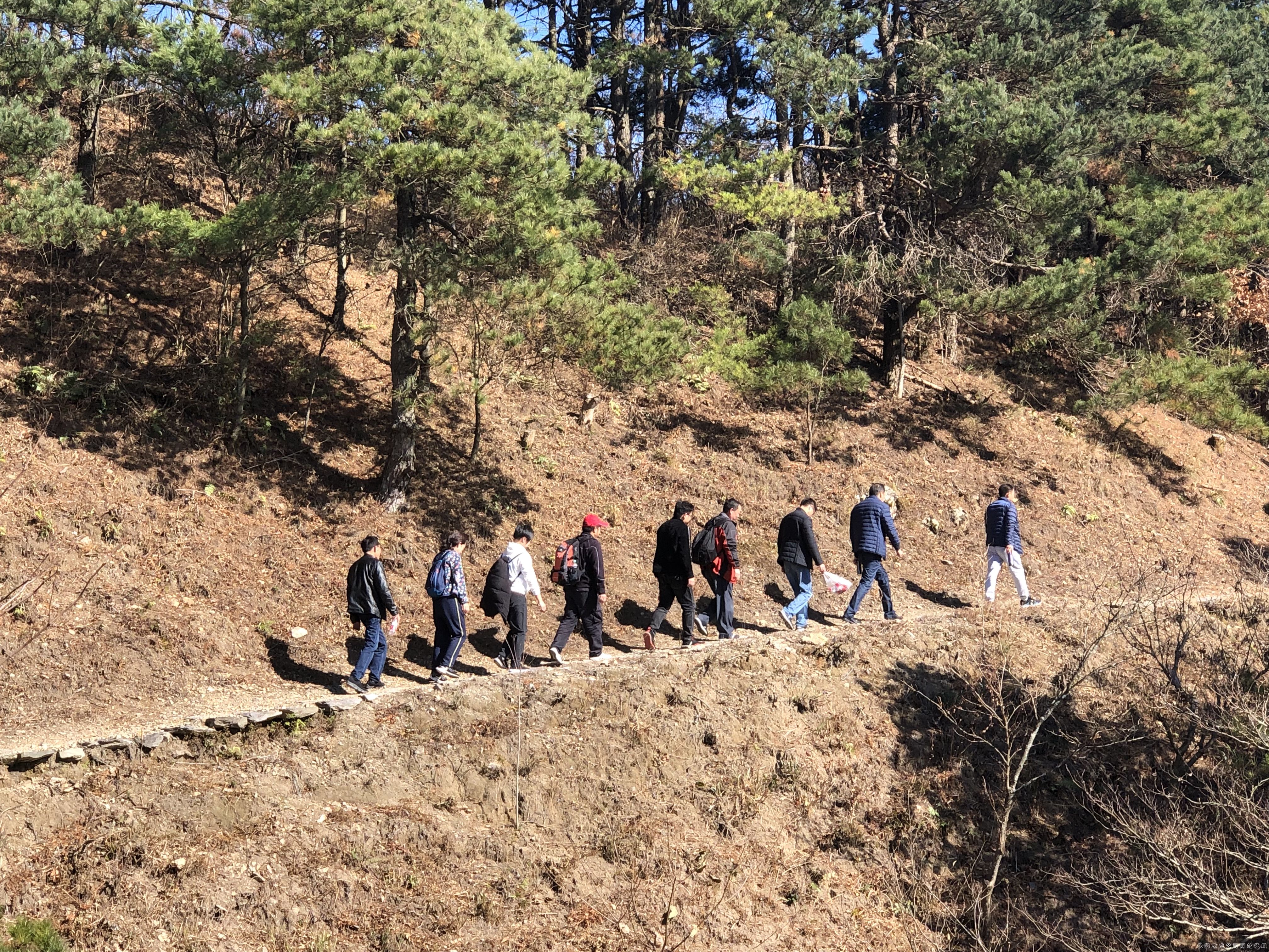 上山的路滿是汗水,陡坡、碎石,直線上升的海拔,穿行其間只聽到高頻率的喘息和腳踩落葉的沙沙聲…… 最最艱難的4KM在隊(duì)友間的鼓勵聲中前行。
